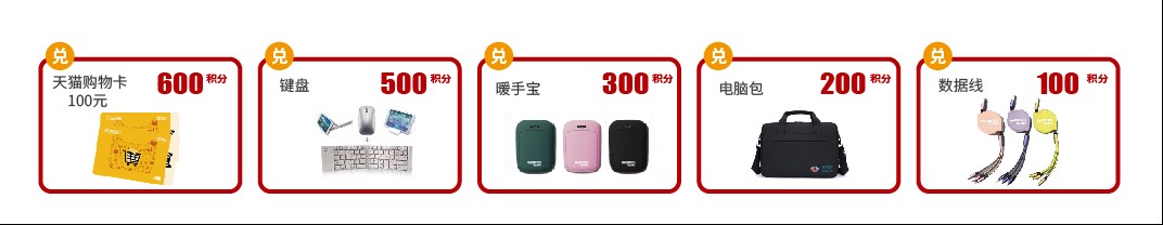 注:积分可在展会现场直接兑换天猫购物卡、键盘、暖手宝、电脑包、数据线等精美礼品