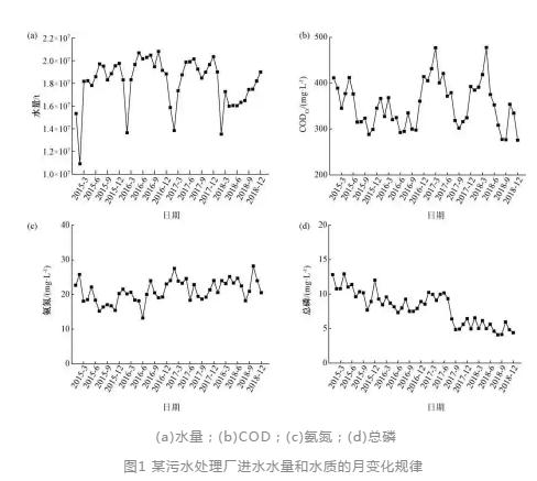 城市污水处理厂对实现水环境质量改善和污染总量减排担负着重要作用,污水处理厂进水的水量水质变化关系到污水处理厂的稳定运行以及出水的稳定达标排放。由于污水水量和水质受到多种因素影响,城市污水处理厂进水的负荷变化较大,会对污水处理厂的正常运行和管理产生不利影响。因此,研究污水处理厂的进水变化规律及其特性,特别是针对工业废水和生活污水混合且工业废水占比较高的污水处理厂,有助于提高污水处理厂的运行效率和水平,对改善污水处理厂的出水水质以及降低运行费用也具有重要价值。