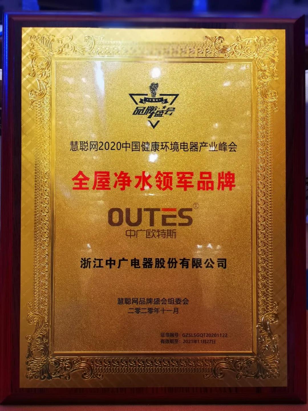 会上,中广电器旗下主打品牌“中广欧特斯”以卓越的品牌影响力、行业领军实力、出众的系统优势以及广为人知的诚信经营,被授予“全屋净水领军品牌”荣誉。