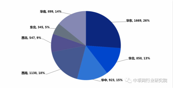 根据中项网数据库显示,2020年污水处理类项目报备数量达到6379个。从区域划分角度,占比最大的是华东地区,达到26%;其次是西南地区,占比为18%;再次是华东地区,占比为15%。